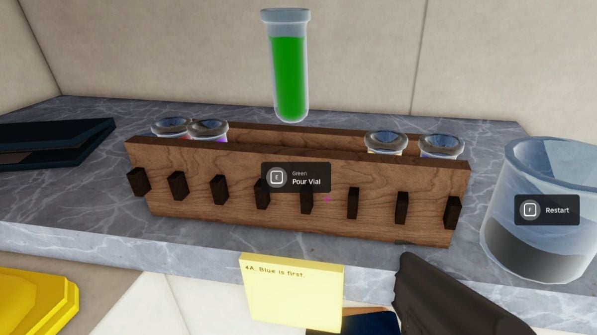 While the recipe is random, there are ways to find out how to mix chemicals for the Arsenal Mega Token quest. After mixing the chemicals, pick up the beaker and proceed to the Cold Storage. Follow the instructions posted on: